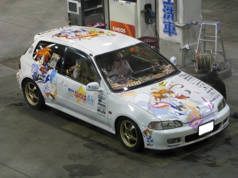 06/25/05:31 痛車でGO!休日に日本橋のオタロードを歩くとですね、人ごみで狭い中をエンジンぶんぶん回しながら通ってくる馬鹿な車がいるんですよね